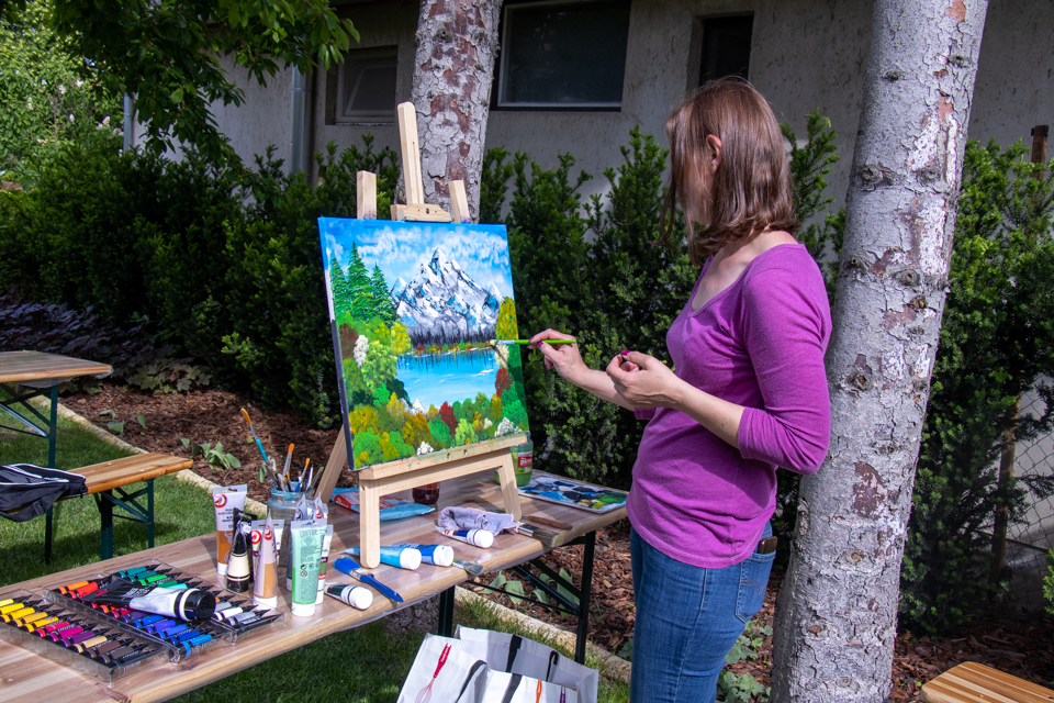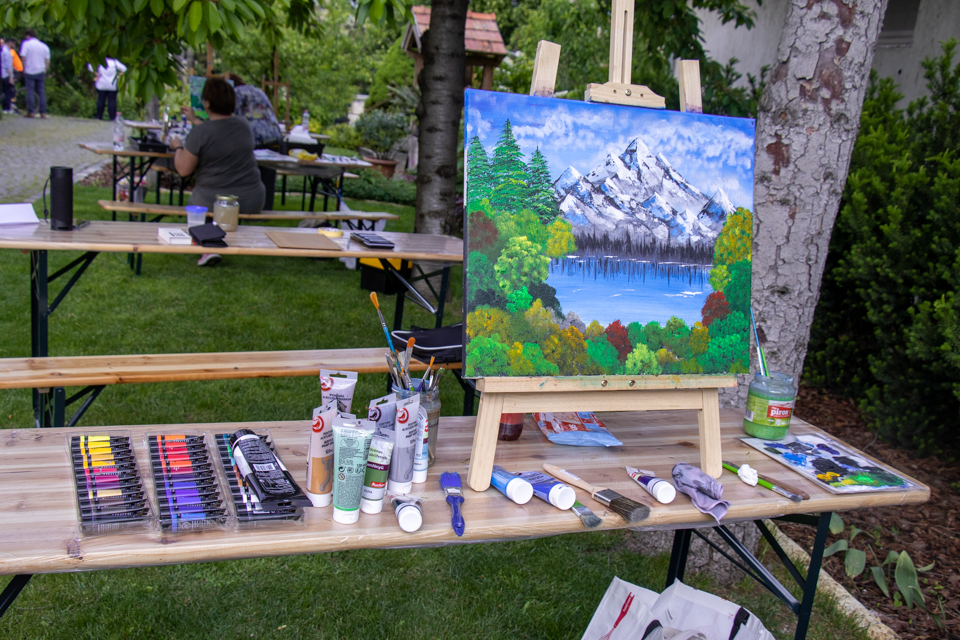 - 2024. május 1-jei megnyitó napján a Varázsecset Festőkör tagjai élményfestést tartottak a Galéria udvarán.