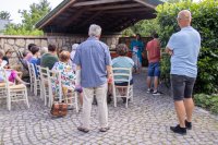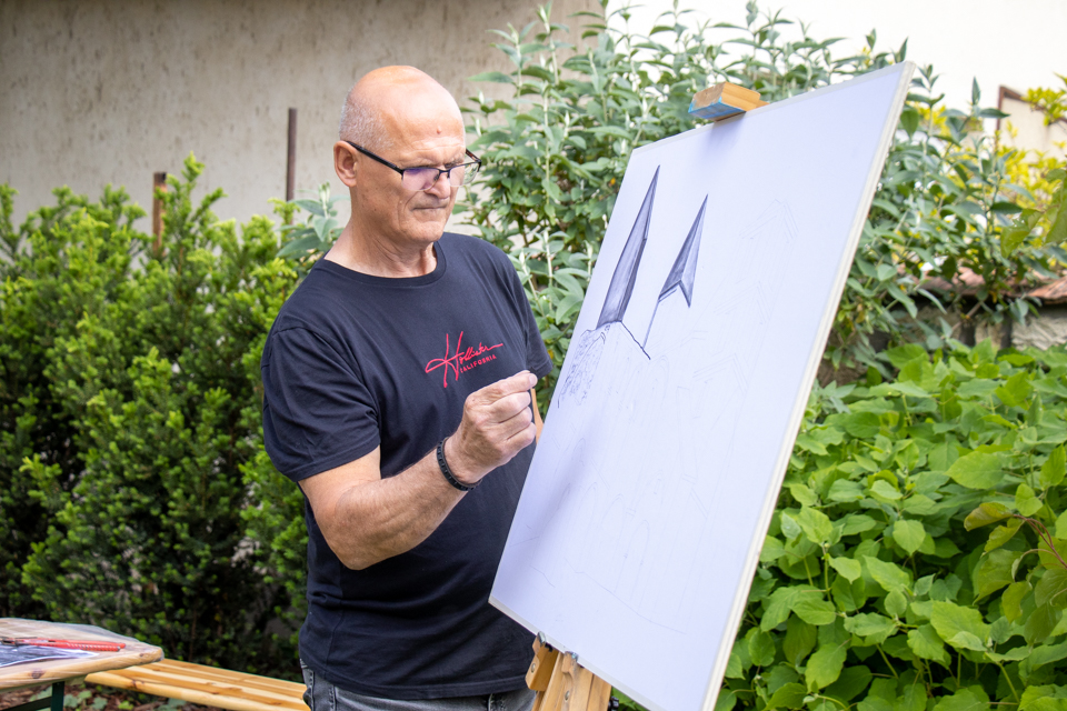 - 2024. május 1-jei megnyitó napján a Varázsecset Festőkör tagjai élményfestést tartottak a Galéria udvarán.